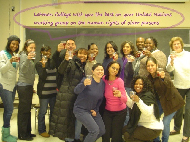 We are a "Urban Older Adults" class from the Master of Social Work program at Lehman College. This is our Toast to support the United Nations working group on the human rights of older persons.